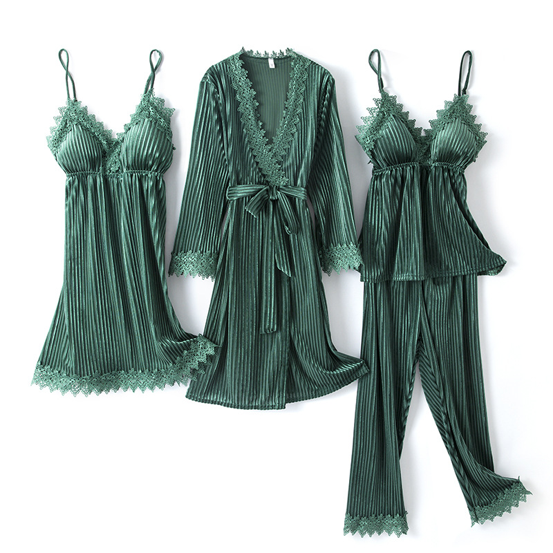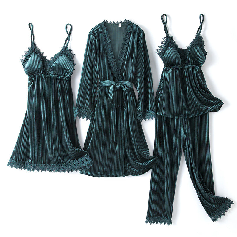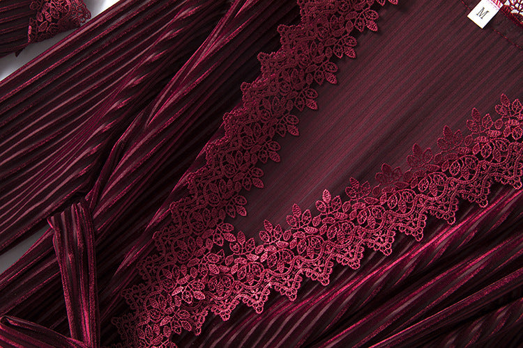 Long-sleeved Sexy Nightgown With Chest Pad